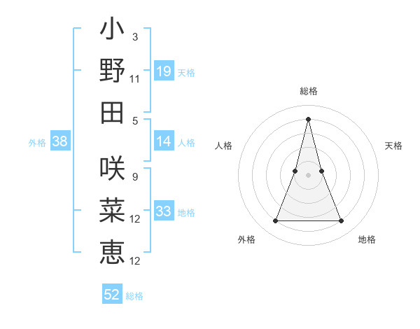 小野田 咲菜恵さんの総格は52画の4点!