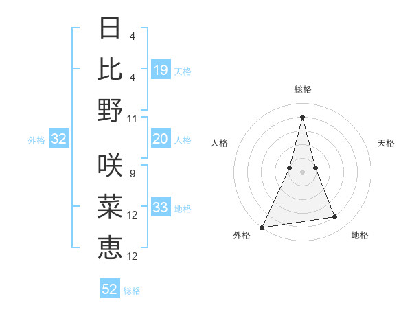日比野 咲菜恵さんを姓名の画数から五運を鑑定