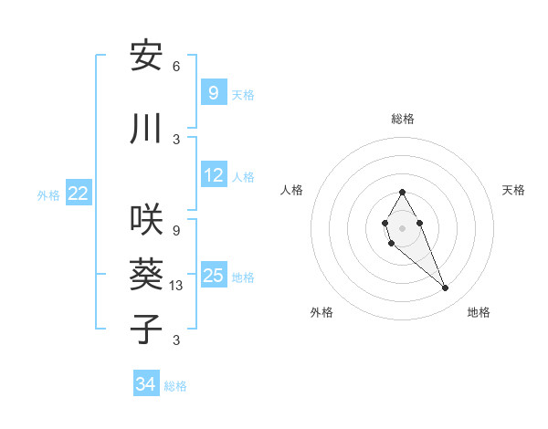 安川 咲葵子さんの外格は22画の1点!