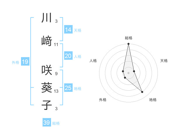 川﨑 咲葵子さんを姓名の画数から五運を鑑定