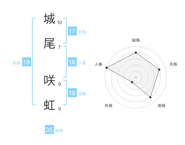 城尾 咲虹さんを姓名の画数から五運を鑑定