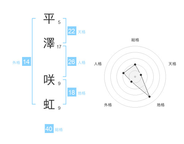 平澤 咲虹さんを姓名の画数から五運を鑑定