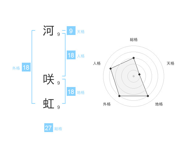 河 咲虹さんの総格は27画の3点!