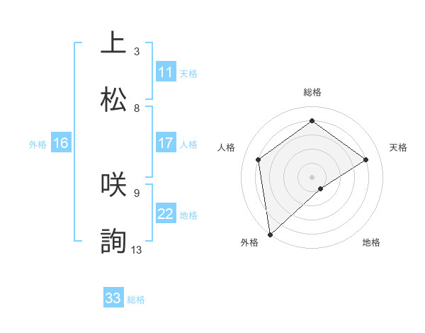 上松 咲詢さんの総格は33画の4点!