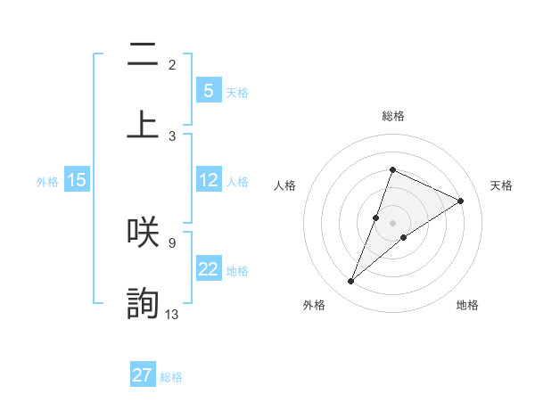 二上 咲詢さんの天格は5画の4点!