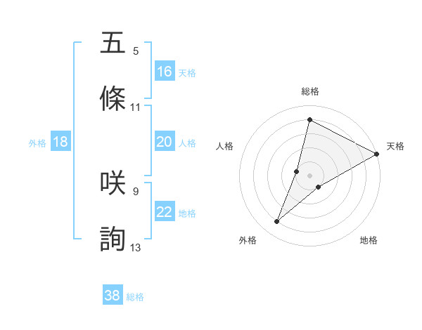 五條 咲詢さんの総格は38画の4点!