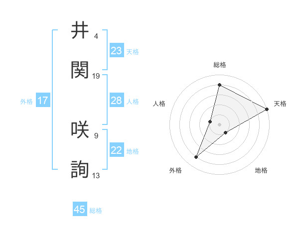 井関 咲詢さんの総格は45画の4点!