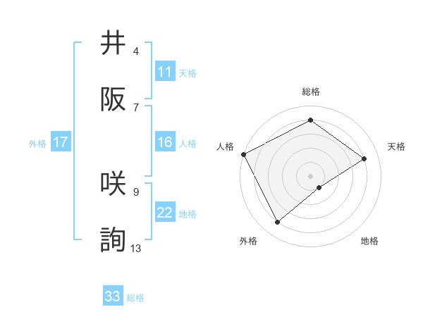 井阪 咲詢さんの総格は33画の4点!
