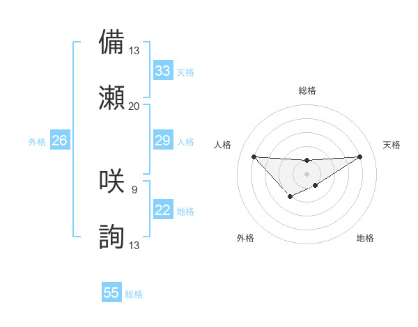 備瀬 咲詢さんを姓名の画数から五運を鑑定