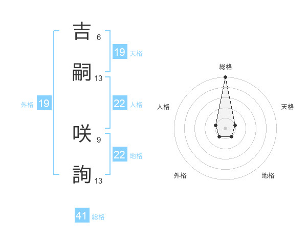 吉嗣 咲詢さんの総格は41画の5点!