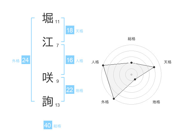 堀江 咲詢さんの外格は24画の5点!