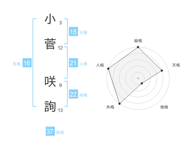 小菅 咲詢さんの総格は37画の5点!