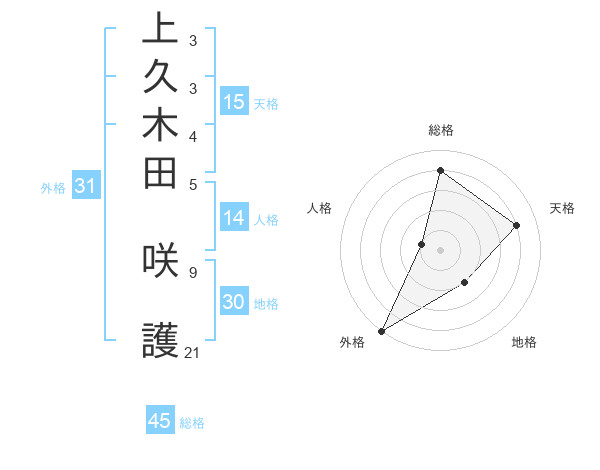 上久木田 咲護さんを姓名の画数から五運を鑑定