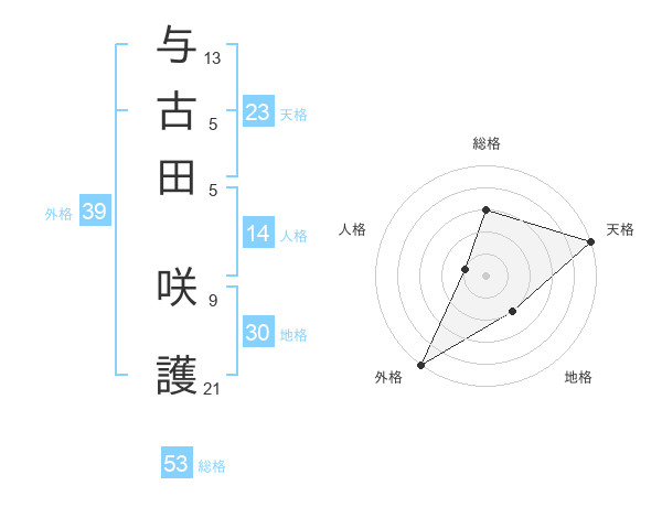 与古田 咲護さんの天格は23画の5点!