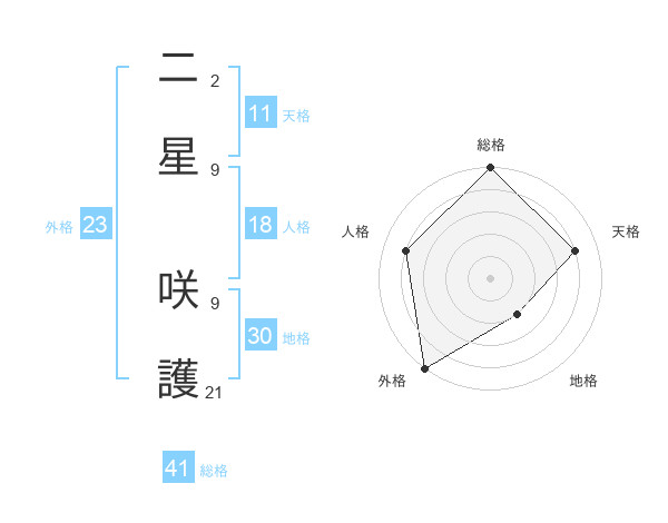 二星 咲護さんの総格は41画の5点!