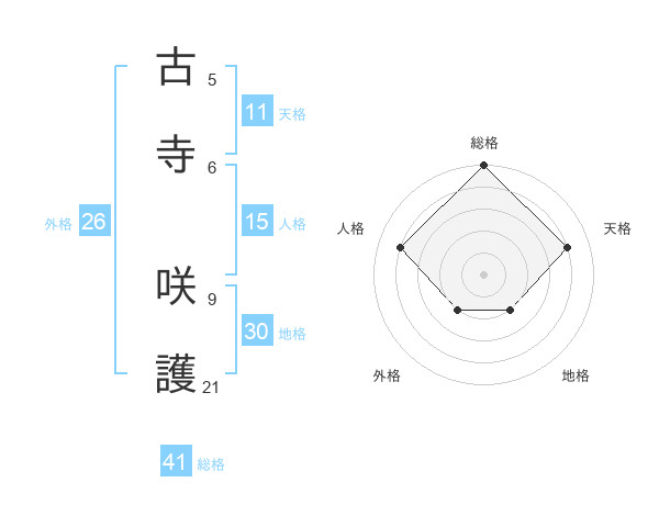 古寺 咲護さんを姓名の画数から五運を鑑定