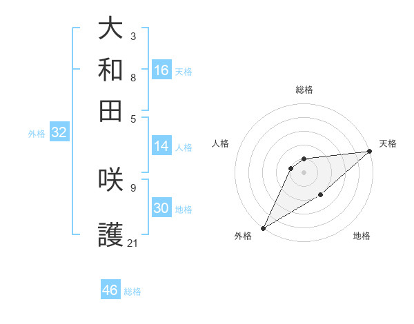 大和田 咲護さんを姓名の画数から五運を鑑定