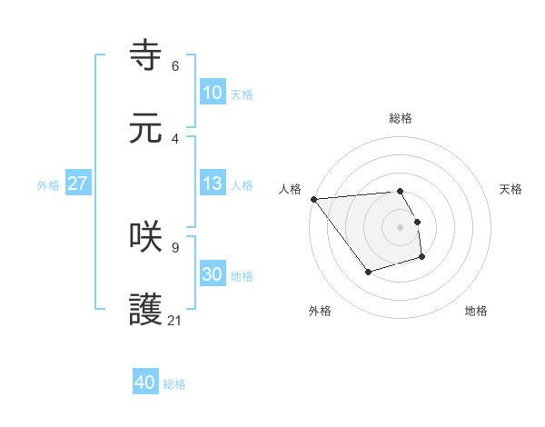 寺元 咲護さんの総格は40画の2点!