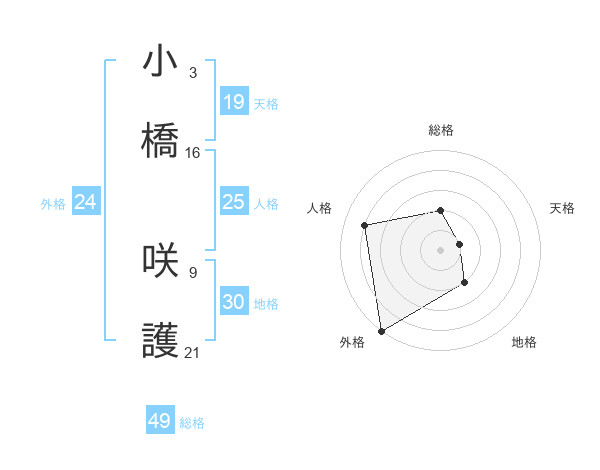 小橋 咲護さんを姓名の画数から五運を鑑定