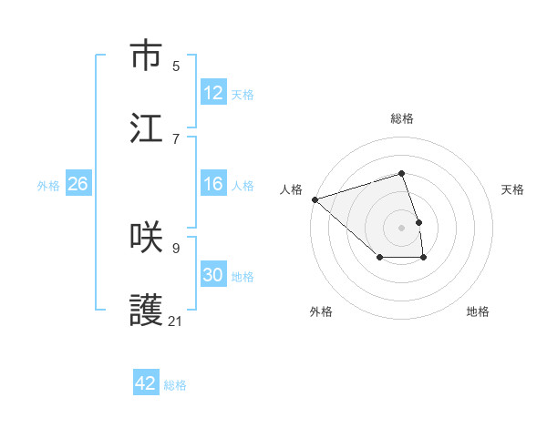 市江 咲護さんの総格は42画の3点!