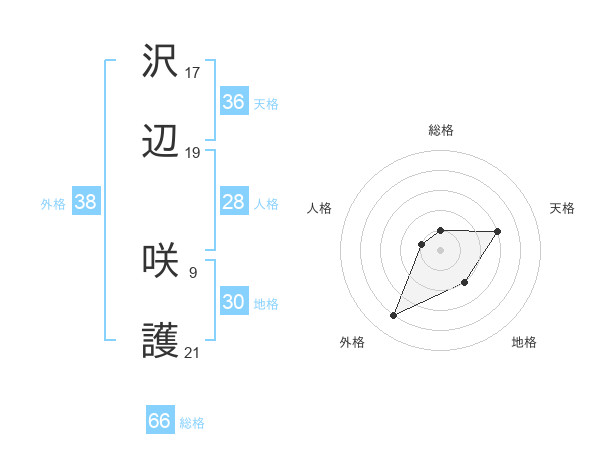沢辺 咲護さんの総格は66画の1点!