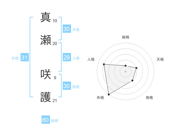 真瀬 咲護さんを姓名の画数から五運を鑑定