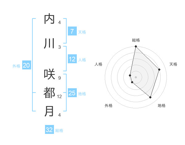 内川 咲都月さんを姓名の画数から五運を鑑定