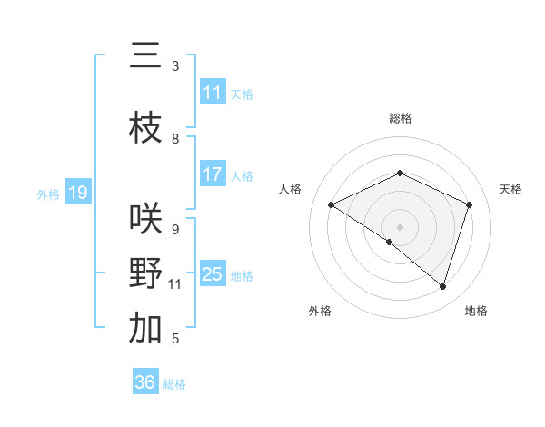 三枝 咲野加さんを姓名の画数から五運を鑑定