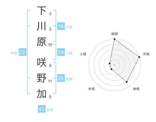 下川原 咲野加さんを姓名の画数から五運を鑑定