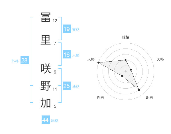 冨里 咲野加さんを姓名の画数から五運を鑑定