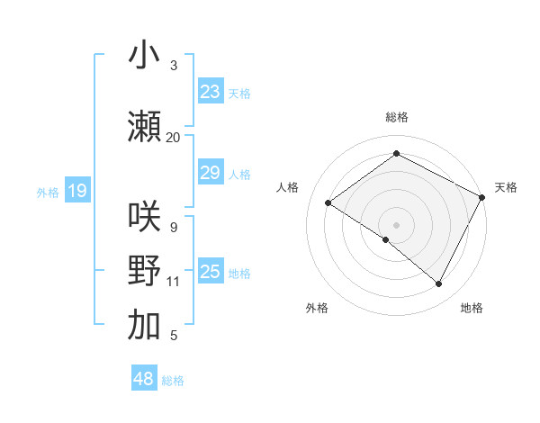 小瀬 咲野加さんを姓名の画数から五運を鑑定