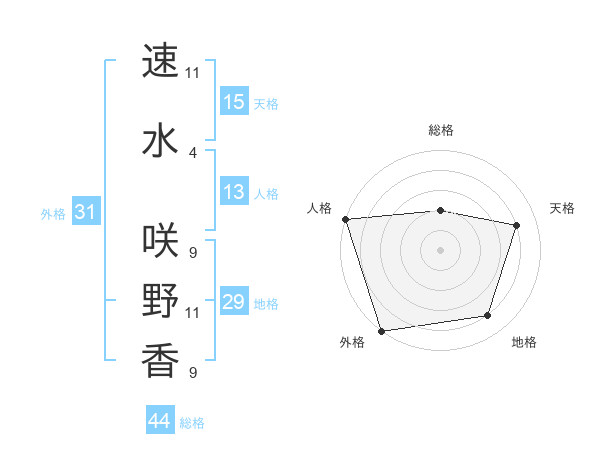 速水 咲野香さんを姓名の画数から五運を鑑定