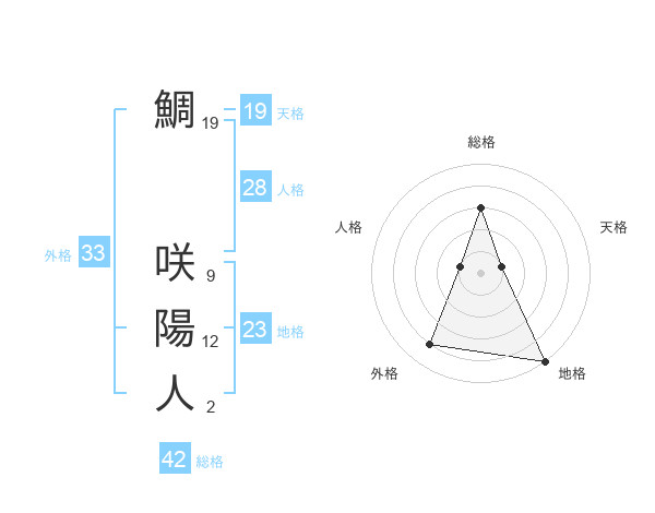 鯛 咲陽人さんの総格は42画の3点!