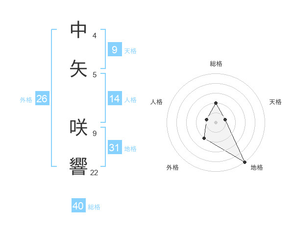 中矢 咲響さんの地格は31画の5点!