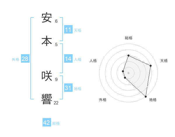 安本 咲響さんの総格は42画の3点