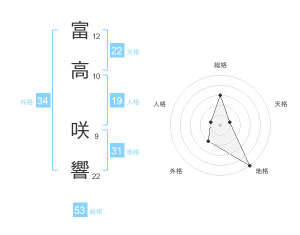 富高 咲響さんの総格は53画の3点!