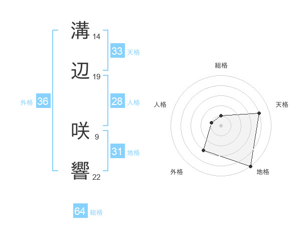 溝辺 咲響さんの総格は64画の1点!