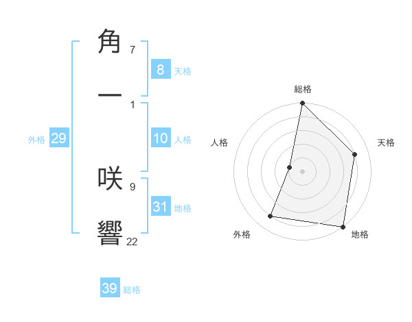 角一 咲響さんの総格は39画の5点!