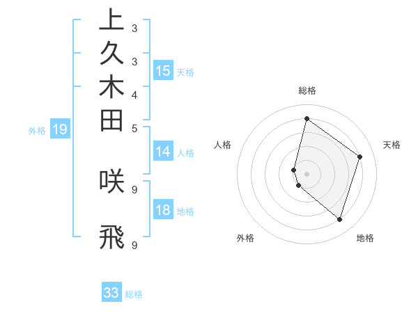 上久木田 咲飛さんを姓名の画数から五運を鑑定