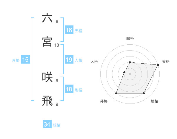 六宮 咲飛さんを姓名の画数から五運を鑑定