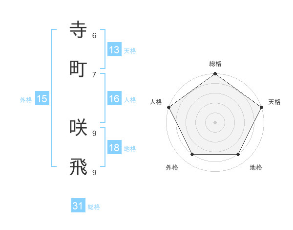 寺町 咲飛さんの総格は31画の5点!
