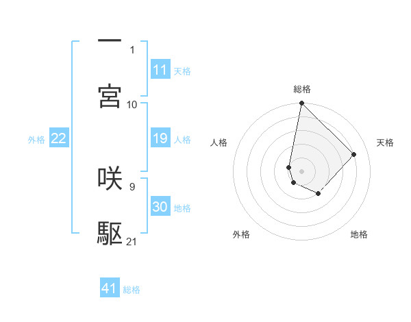 一宮 咲駆さんの総格は41画の5点!