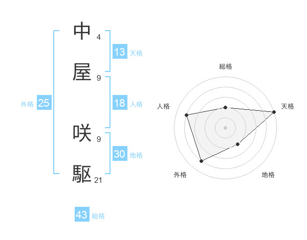 中屋 咲駆さんを姓名の画数から五運を鑑定