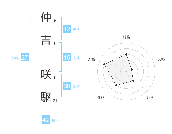 仲吉 咲駆さんを姓名の画数から五運を鑑定