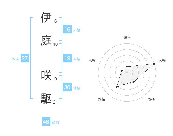 伊庭 咲駆さんを姓名の画数から五運を鑑定