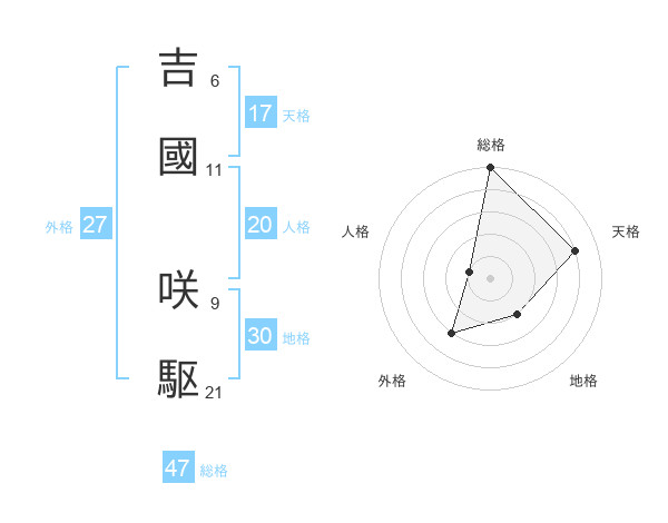 吉國 咲駆さんを姓名の画数から五運を鑑定