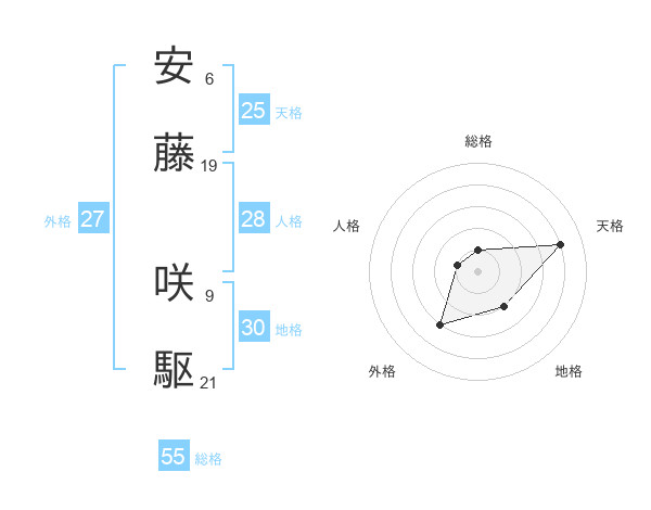 安藤 咲駆さんの総格は55画の1点!