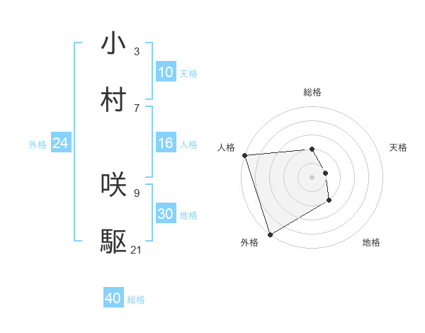 小村 咲駆さんを姓名の画数から五運を鑑定