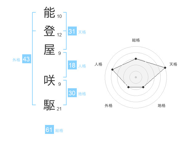 能登屋 咲駆さんを姓名の画数から五運を鑑定
