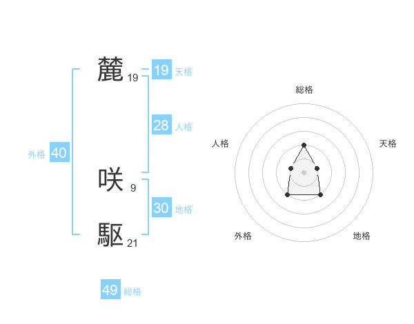 麓 咲駆さんを姓名の画数から五運を鑑定